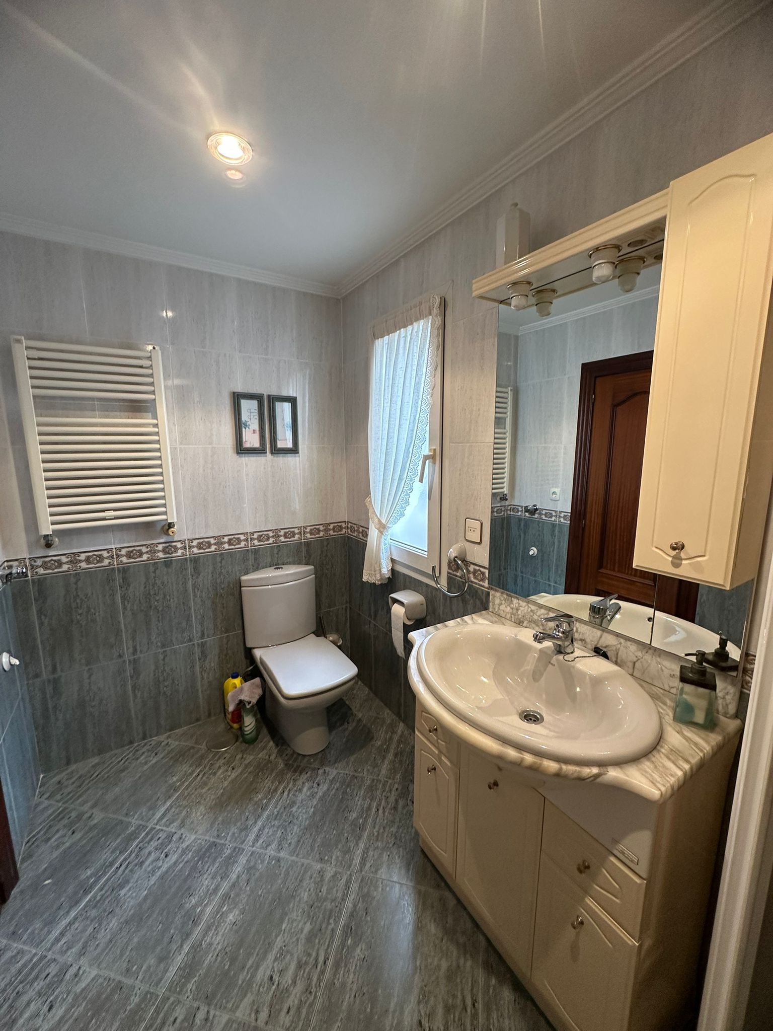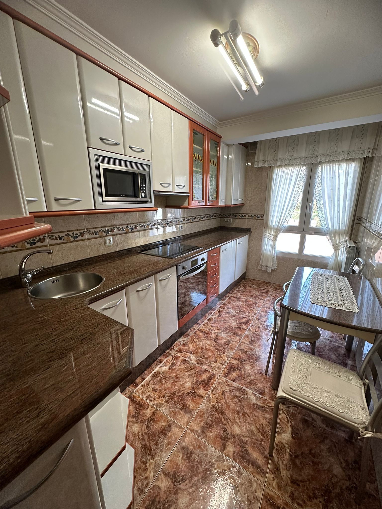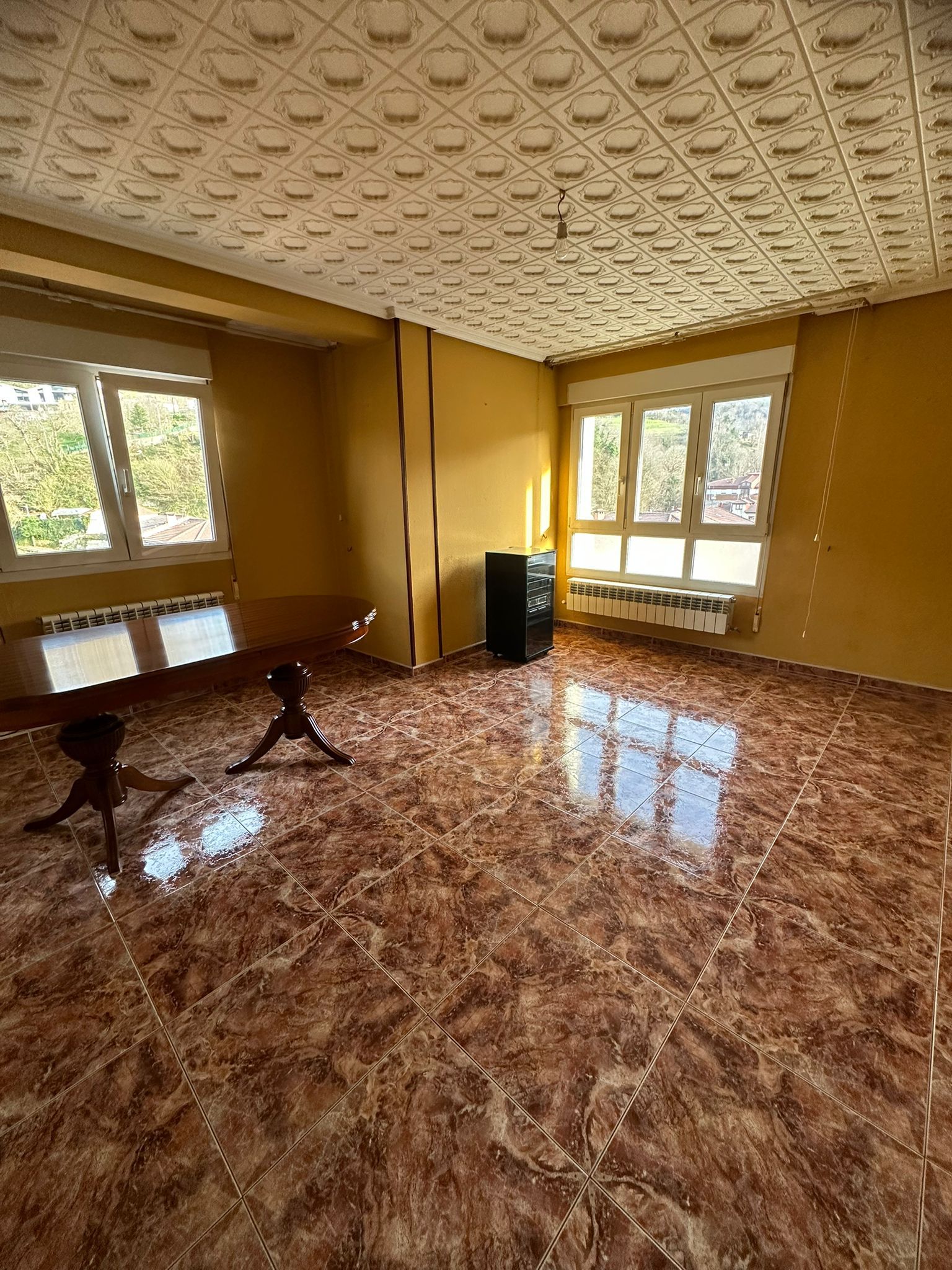 Amplio piso para entrar en Blimea, en 5ª planta con ascensor. Vivienda distribuida en tres dormitorios, salón comedor, cocina, despensa (se podría hacer aseo) y baño completo con plato de ducha. Queda amueblado como está y con electrodomésticos (vitro, horno, campana, nevera y congelador). Suelos de gres, ventanas de PVC y calefacción/agua caliente por gas natural. Carbonera grande en el edificio. Tejado y fachada nuevos. ¡Llama e infórmate sin compromiso!